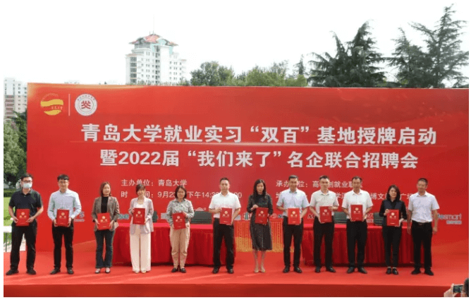 2021.10.16青島大學(xué)就業(yè)實(shí)習(xí)“雙百”基地授牌啟動儀式暨2022屆“我們來了”名企聯(lián)合招聘會在青島大學(xué)浮山校區(qū)博文樓前廣場舉行,酷特智能作為在大學(xué)生就業(yè)實(shí)習(xí)方面與青島大學(xué)有長期深度合作的優(yōu)質(zhì)單位,受邀參加了本次啟動儀式,酷特智能人力資源經(jīng)理劉妍代表出席。
