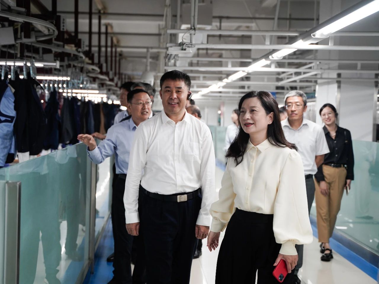 9月27日,新疆生產(chǎn)建設(shè)兵團工業(yè)和信息化局黨組書記、局長郇恒賽一行蒞臨酷特智能考察,調(diào)研青島市紡織服裝產(chǎn)業(yè)鏈“鏈主”重點企業(yè),酷特智能董事長張?zhí)N藍等陪同調(diào)研。