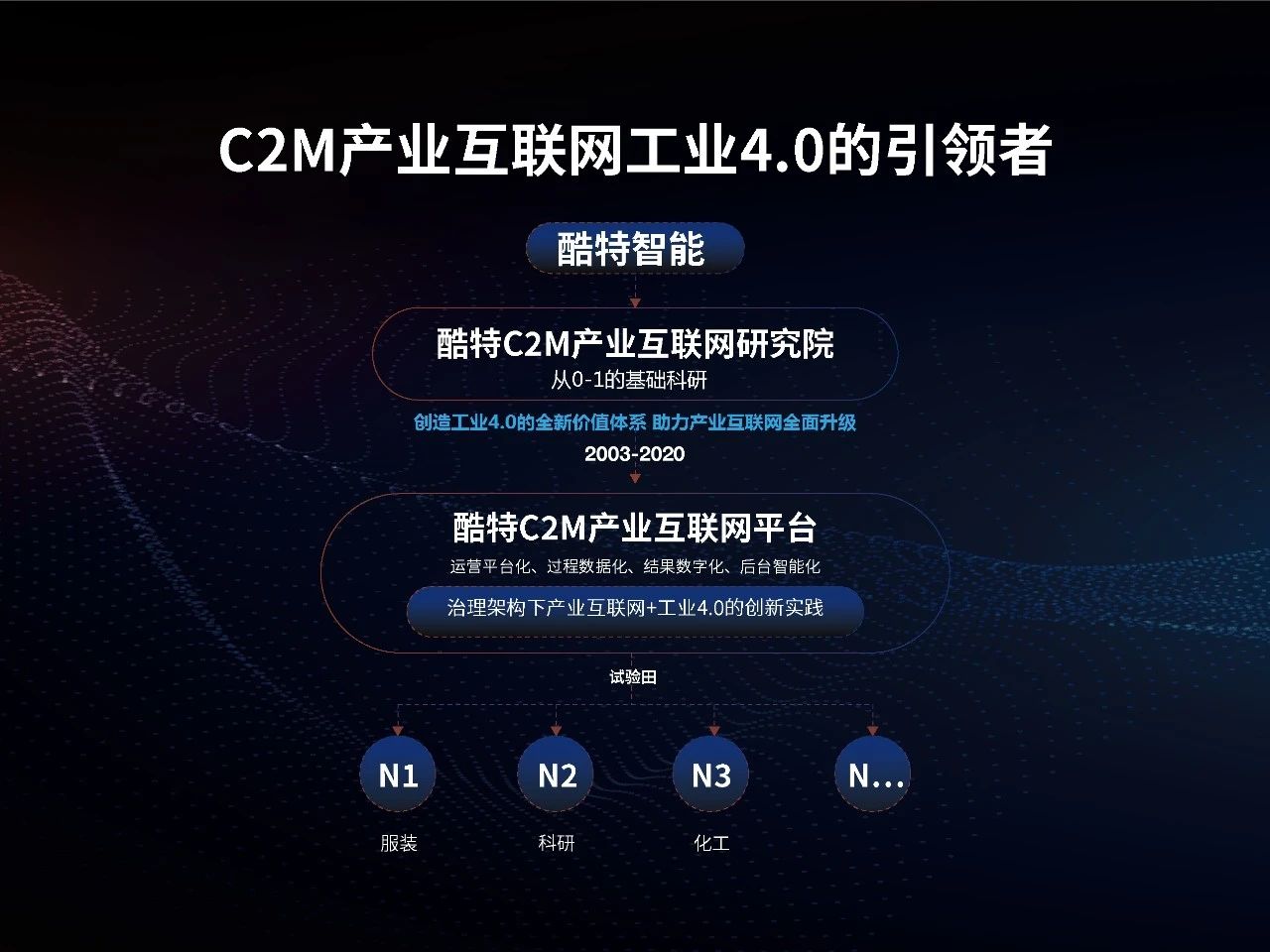 酷特智能以“C2M產(chǎn)業(yè)互聯(lián)網(wǎng)工業(yè)4.0的引領(lǐng)者”為戰(zhàn)略定位,以“酷特C2M產(chǎn)業(yè)互聯(lián)網(wǎng)研究院”為核心,形成了以“科技為核心、服裝為載體、資本為支撐”的三柱鼎立戰(zhàn)略布局,聚焦“產(chǎn)業(yè)互聯(lián)網(wǎng)工業(yè)4.0”從0-1的基礎(chǔ)科研。用十多年的實踐探索,成功地以服裝個性化智能定制的產(chǎn)業(yè)互聯(lián)網(wǎng)平臺為切入點及應用場景,建立了C2M產(chǎn)業(yè)互聯(lián)網(wǎng)的核心能力(即智能制造、個性化定制解決方案和數(shù)字化治理體系),由傳統(tǒng)服裝企業(yè)進化成為C2M產(chǎn)業(yè)互聯(lián)網(wǎng)工業(yè)4.0生態(tài)的科技企業(yè)。
